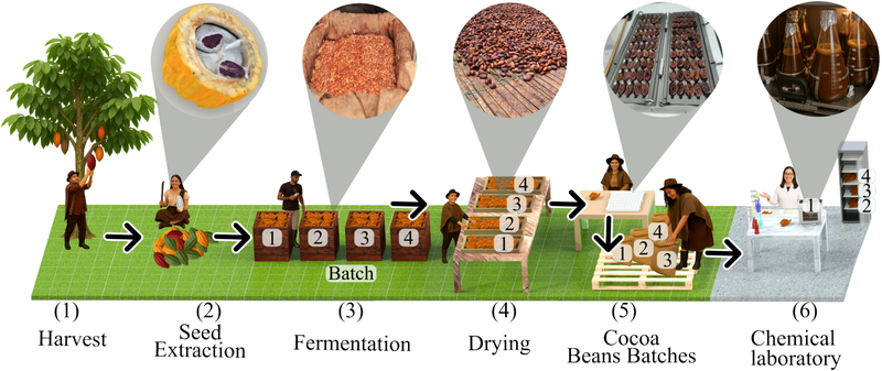 Predict physicochemical properties of cocoa beans from VIS-NIR spectral data using learning-based regression; dataset collected from Santander and evaluated across regions.
